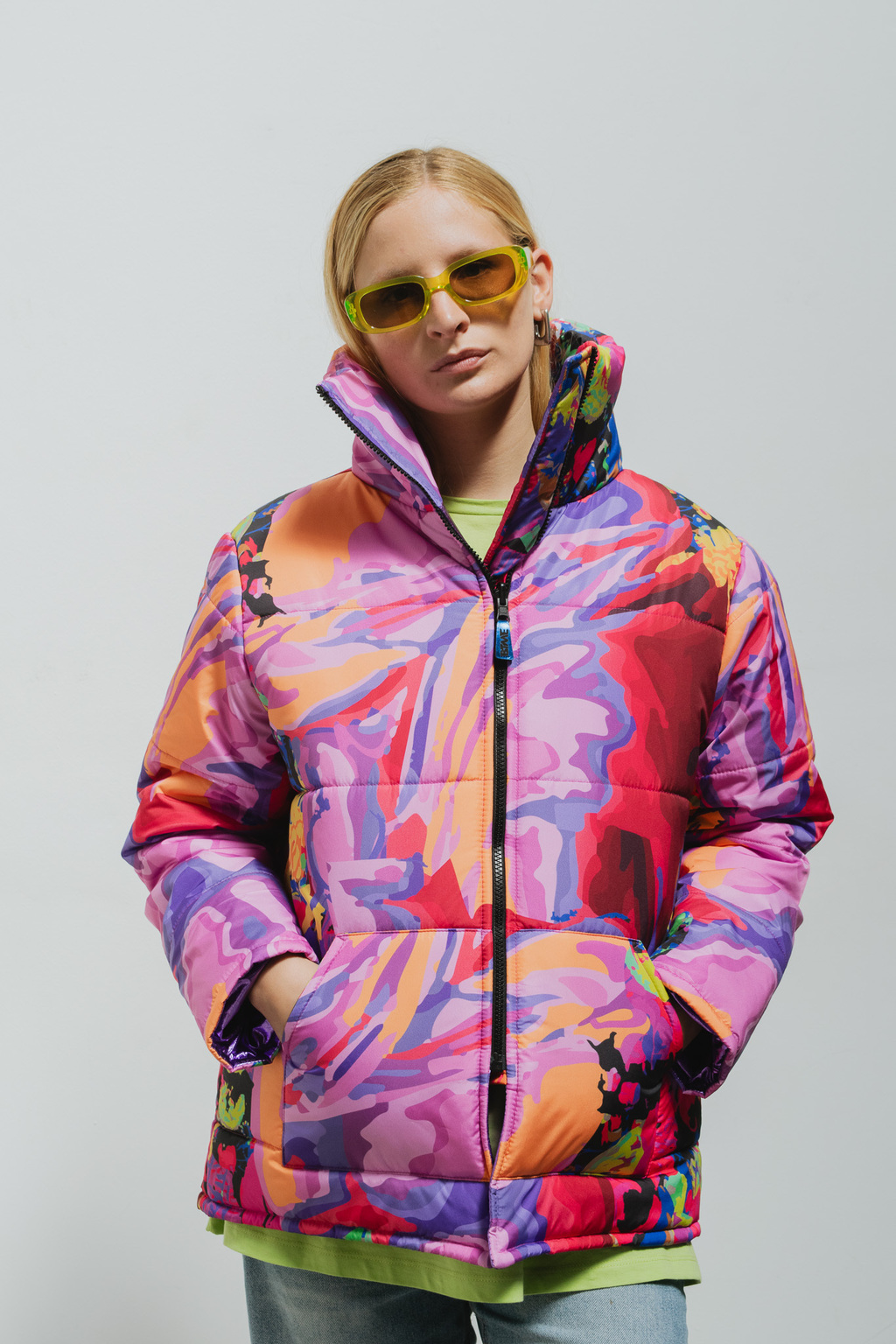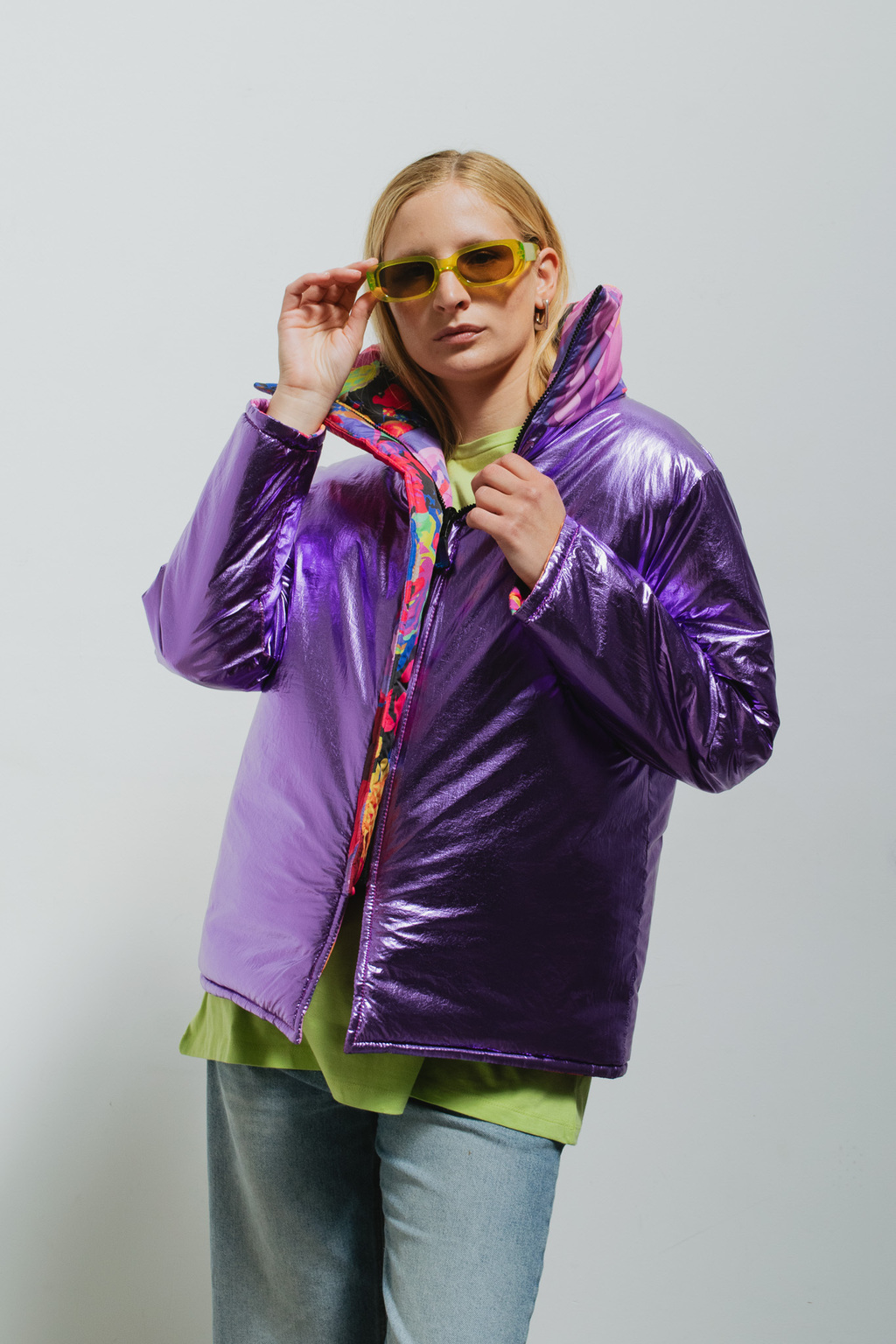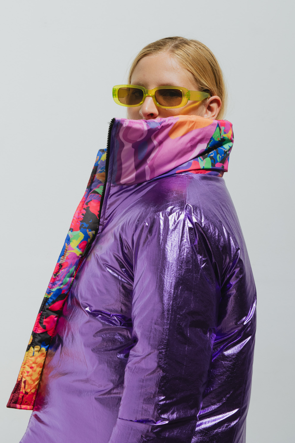 Con la Puffer Sculpt, podés variar tu look en un instante: de un lado estampada para alegrar tus días y del otro metalizada para hacer brillar cualquier look.